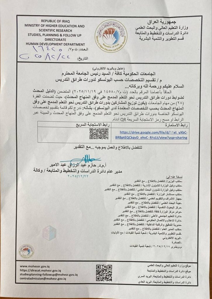 الدليل المحدث لضوابط دورات طرائق التدريس في الجامعات العراقية نحو التعليم المدمج