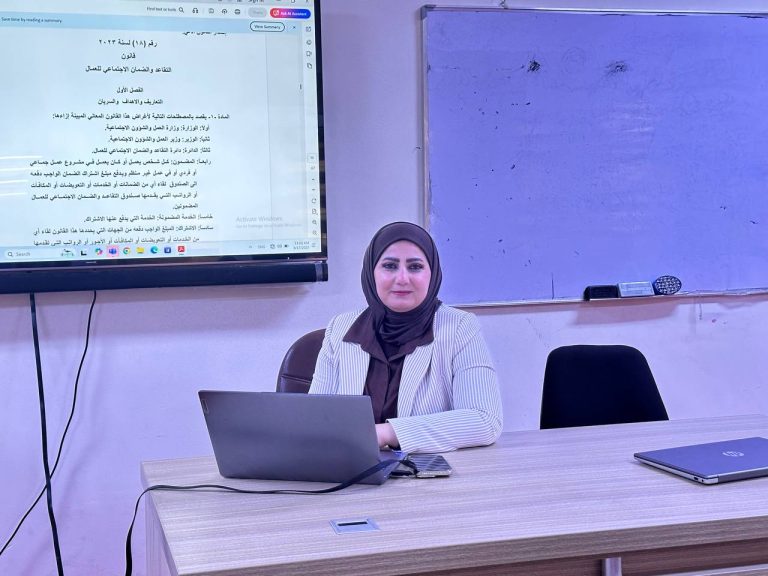 برعاية السيد رئيس الجامعة الاستاذ الدكتور ( تحسين حسين مبارك المحترم ) وباشراف الاستاذ المساعد الدكتورة ( بيداء حسن حسين المحترمة ) مدير مركز التعليم المستمر مركز التعليم المستمر / جامعة ديالى يقيم ورشة عمل بعنوان ( قانون التقاعد والضمان…